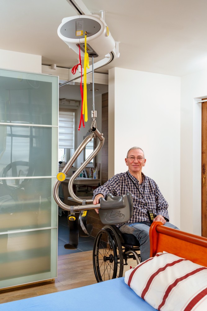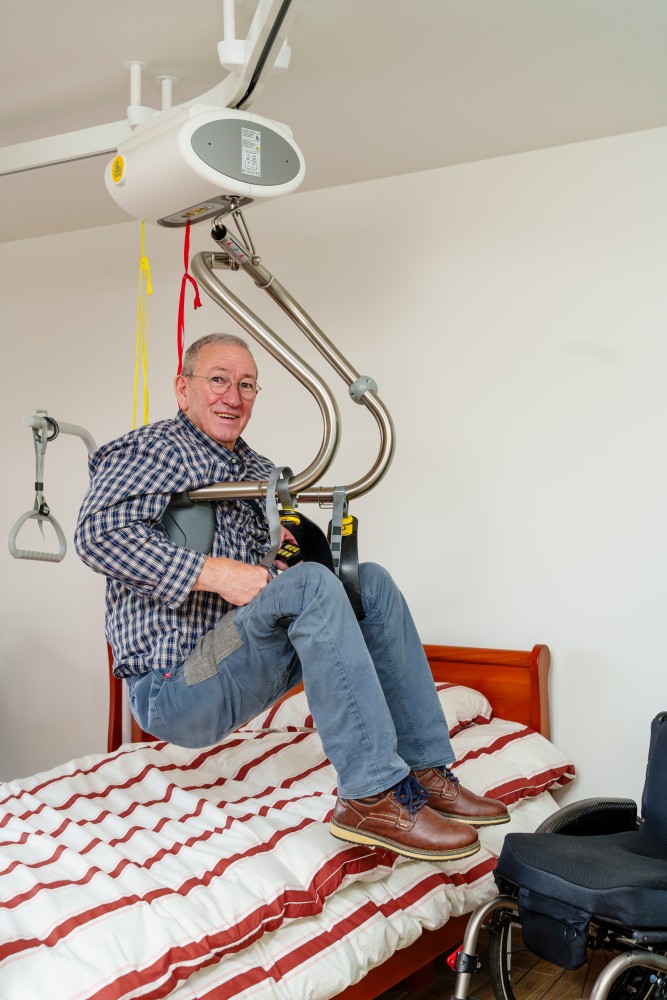 You can use a ceiling motor with a SureHands® Body Support to move between your bed and your wheelchair. You decide when you get up or go to sleep!